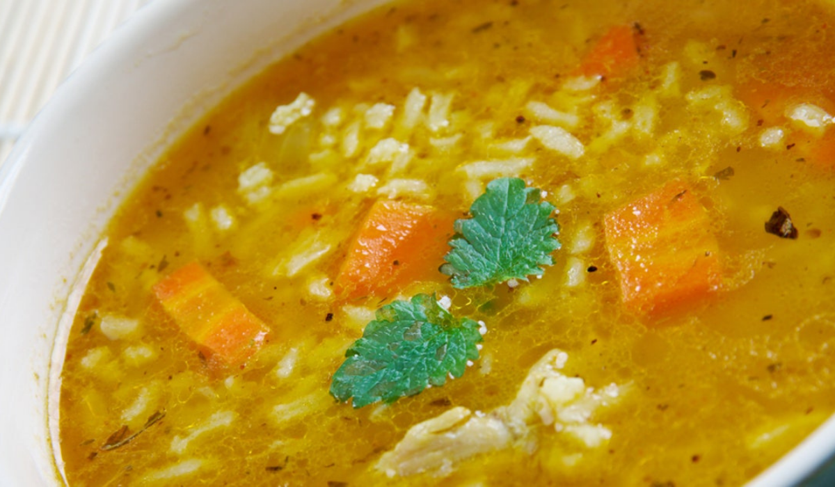 Cibuli, celer, mrkev a máslo orestujte ve velkém hrnci na polévku. Přidejte mouku a kari a připravujte dalších 5 minut. Přidejte kuřecí vývar, dobře promíchejte a přiveďte k varu. Vařte asi 1/2 hodiny.