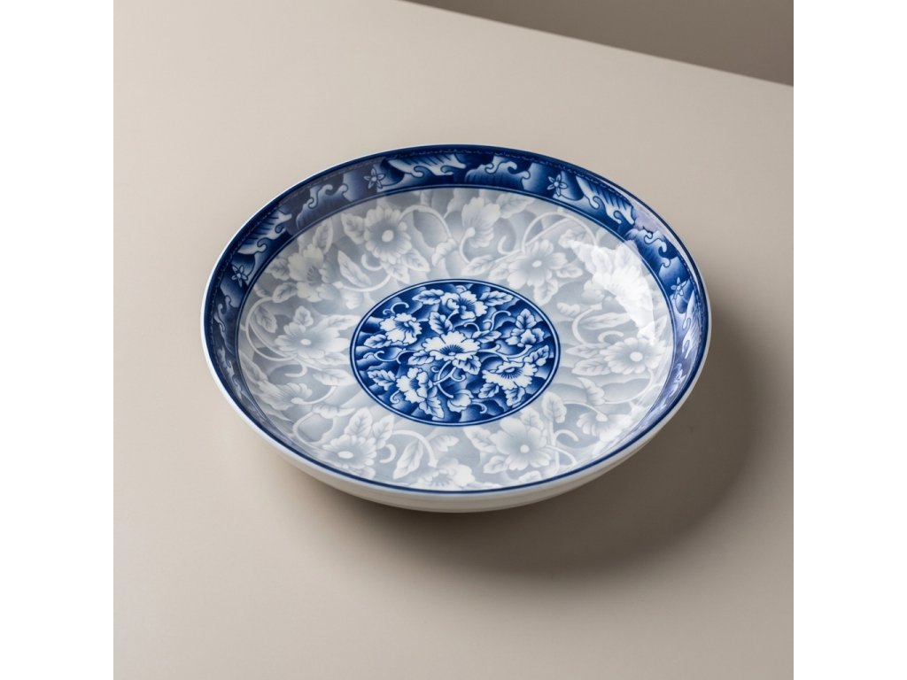 Talíř z tradičního čínského porcelánu i průměru 23 cm.